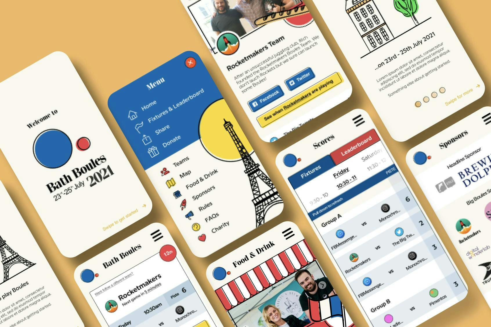 Three different teams contributed to the new Bath Boules application: MediaClash provided the content and the initial branding, Bath-based software design Digital Wonderlab built the backend, and Rocketmakers handled all front-end work including user experience and user interface design.
