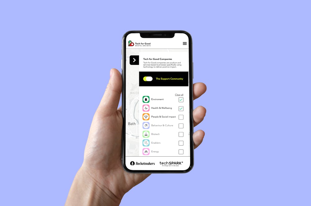 In partnership with TechSPARK, a non-profit tech network covering the South West, Rocketmakers set out to develop an online resource to celebrate the entire Tech for Good regional ecosystem.