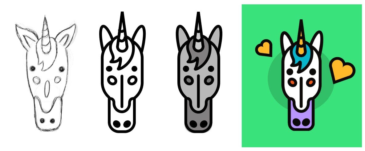 In the case of Unicornfest, we initiated the process with sketches for their brand stickers, which would be utilised across social media, marketing materials, the website, and physical merchandise. Our team explored multiple variations for each sticker, presenting the client with our top choices. Upon selecting their favourite concepts, we refined and transformed them into vector illustrations.