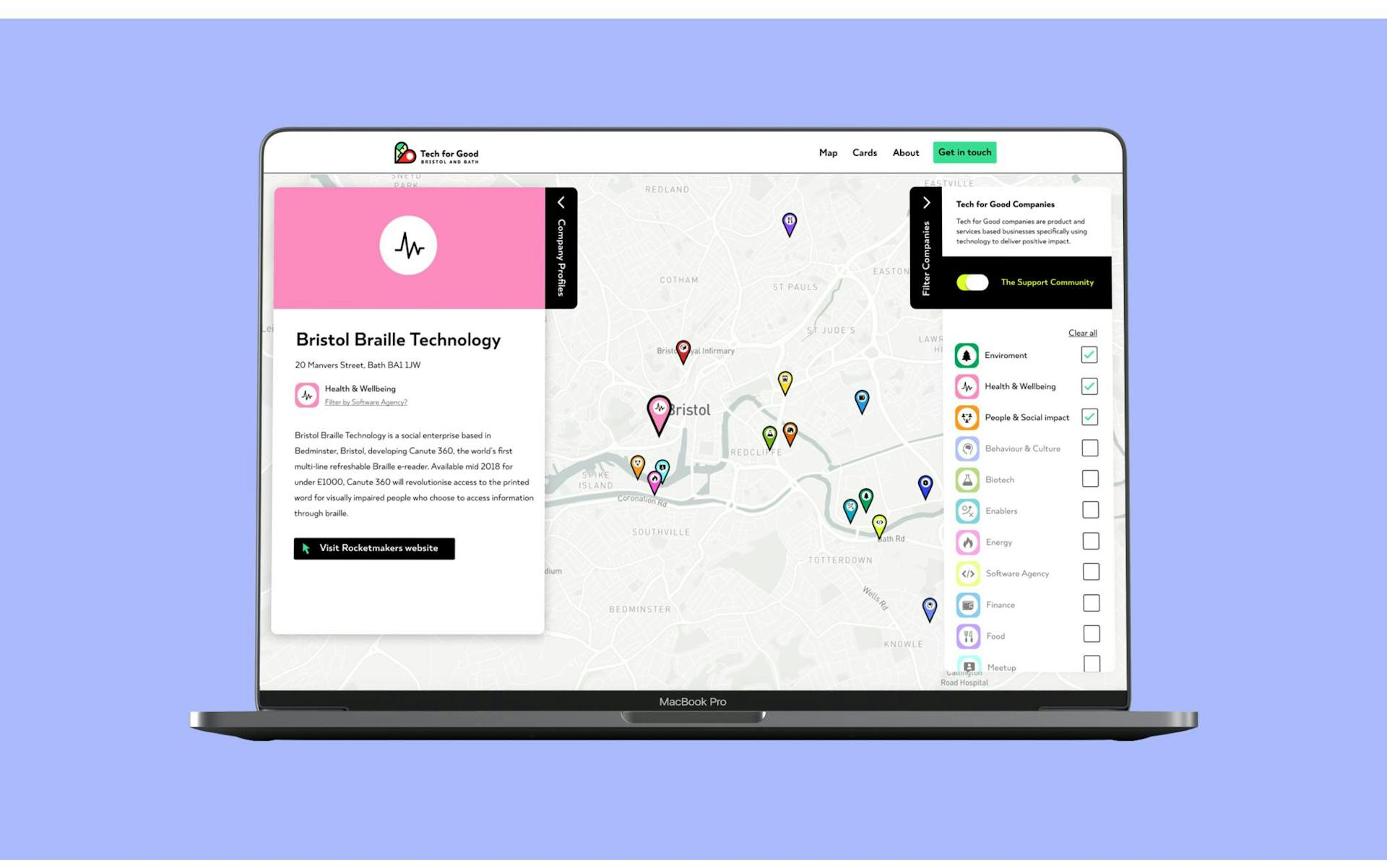 In partnership with TechSPARK, a non-profit tech network covering the South West, Rocketmakers set out to develop an online resource to celebrate the entire Tech for Good regional ecosystem.